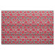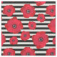 A floral fabric featuring red poppies in different sizes against black and white stripes.