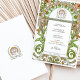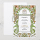 This exquisite wedding invitation features a stunning Art Nouveau-inspired design, showcasing intricate floral details in a harmonious palette of soft greens, peachy pinks, and golden yellows. The border is adorned with stylised poppies, daisies, and other botanical elements, creating a sophisticated yet natural feel. The centre of the card presents a customisable section for your event details, elegantly framed by the ornate floral motifs. Perfect for couples seeking timeless elegance, this design combines artistic craftsmanship with romantic botanical themes, making it ideal for vintage-themed or nature-inspired weddings.