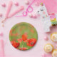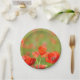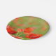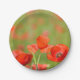 Paper plate with vibrant red poppy flowers in a green field full of poppies. It has a strong emotion of hapiness, spring and summer. Great for a picnic!
