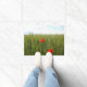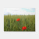 Vibrant red poppies amongst young green wheat ears growing in the Dordogne, France