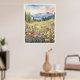 Poppies In The Field Mountains Natural Scene Poster