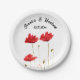 Poppies, poppy, red floral, watercolor painting paper plates. Summer floral design. Perfect For Wedding favours. Personalise it with your names and date.