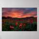 An amazing sunset showing orange/red skies with a field full of poppies by the photographer Dave Fletcher