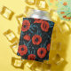 Poppies, red and blue on black can cooler