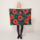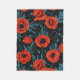 Poppies, red and blue on black fleece blanket