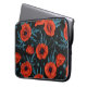 Poppies, red and blue on black laptop sleeve