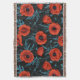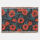 Poppies, red and blue on black throw blanket