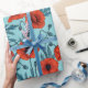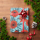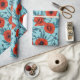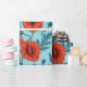 Poppies, red and blue on pool blue wrapping paper