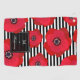 Monogrammed golf towel featuring red poppies against black and white stripes.