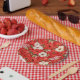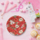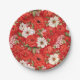 Poppy and chamomile red and white flowers paper plate