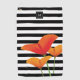 California golden orange and red poppies pop against chic black and white stripes for a bold summer style elegantly finished with your monogram framed inside a small and classy black square. ♡ Idyllfire