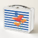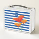 Poppy Chic Blue Stripes Monogram Metal Lunch Box