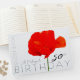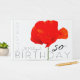 Beautiful Red Poppy illustration. Design on hard cover guest book with text for 50th Birthday to customise. You can easily change text (font, colour, size and position) by clicking the customise button. Matching birthday save the date (postcard) and products for home, accessories...