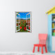 Bright Red poppies in a field, fake window scene, for a windowless room or office wall. Fun, realistic optical illusion scenic poster for an office or study wall.