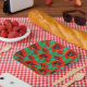 A beautiful seamless repeating pattern comprises of beatiful red poppy flowers in full bloom set against a teal green background. This luxurious and modern design is ideal for a summer or spring garden wedding; remembrance day or any floral themed celebration. This generative content 3D (three dimensional looking) graphic is sure to wow your guests.