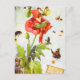 An adorable Gnome nestles inside a large poppy flower amidst bees and other bugs. Charming image.