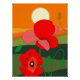 Poppy meadow at sunset illustration. Meadow of Poppies. Papaver. Late afternoon poppy landscape just before sunset. Fine art