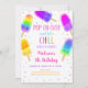 This adorable invitation features colourful watercolor popsicles and confetti.