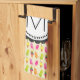 Kitchen towel with a sweet summertime pattern featuring popsicles and ice cream cones in colourful vibrant watercolors. Write your custom monogram inside a round frame with a whimsical flower shape.