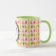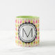 Coffee mug with a sweet summertime pattern featuring popsicles and ice cream cones in colourful vibrant watercolors. Write your custom monogram inside a round frame with a whimsical flower shape.