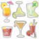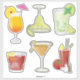 A set of popular cocktails icon stickers. Tequila Sunrise, Margarita, Mojito, Americano, Sidecar and Bloody Mary.