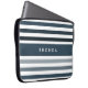 Popular Large Stripes With Name in Deep Blue Laptop Sleeve