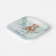 The watercolor design featuring a cute teddy bear swinging in a eucalyptus wreath with dusty blue flowers is a charming choice for a boy baby shower. The delicate detailing of the design adds a whimsical touch to the paper plate, making it a lovely addition to the celebration. The soft colour palette and playful imagery create a sweet and elegant atmosphere, perfect for welcoming a new arrival.