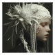 A hauntingly beautiful young girl appears carved from luminous porcelain, eyes softly closed in peaceful reverie. An elaborate headdress of intricate white lace, chrysanthemum blooms, and cascading floral tendrils crowns her head, woven through long pale braids that trail like frozen vines. The stark contrast against a deep charcoal background amplifies the ghostly glow of her skin and the fragile elegance of every petal and thread—evoking winter purity, quiet melancholy, ancient ritual, innocence preserved in frost, and dreamlike fragility. Perfect for moody bedrooms, meditation corners, gothic-inspired reading nooks, therapy spaces, dark-romantic decor, or as deeply evocative gifts for lovers of ethereal fantasy, delicate surrealism, feminine mysticism, or anyone drawn to haunting beauty and introspective stillness.