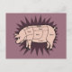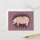 Pork cuts chart with descriptions by the gourmand. Happy cartoon-ish pig on a burst background, with dotted line sections. T-shirts, sweats, mugs, bags, gifts.
