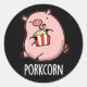Porkcorn Funny Popcorn Pun Dark BG Classic Round Sticker