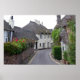 Village scene of thatched-roofed cottages, in Porlock, Exmoor National Park, Somerset, England, UK