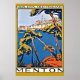 A vintage poster of the port of Menton France restored to its vibrant colours.