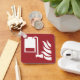 Foam applicator unit and flame icon on red background. Custom text at the back side.