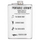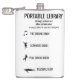 The text Portable library of songs, dances and other performances, complete & unabridged. The image of musical notes and a text the Singing Heart under the text. A silhouette image of a dancing man and a text Acrobatic Dance under the singing heart. An image of a horse standing on its rear legs and a text Full Circus Ahead. A silhouette image of a lying man and a text Peaceful Sleep in the bottom of a funny one-of-a-kind hip flask for men. Customisable. You can change or delete everything. Use the Customise button to fine-tune the product. Have fun and make one.