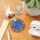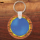 This design is a porthole window. You can see out the porthole to the blue ocean beyond. The surrounding wall is wooden. This porthole window design looks great on this Keychain