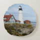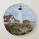 Portland Headlight lighthouse on rocky shore Round Cushion