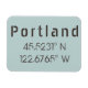 Latitude and longitude map coordinates for the city of Portland, Oregon in modern industrial font
