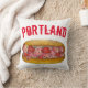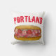 Decorative throw pillow features an original marker illustration of a Maine lobster roll sandwich, with PORTLAND in a red font.