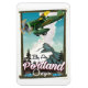 Portland, Oregon vintage travel poster. USA retro plane flight print of the Portland landscape and Mount Hood.
