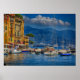 This beautiful photograph shows the colourful houses and harbour of Portofino, Italy with Sea Dream cruise ship in the background