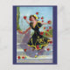A pretty woman in a black dress with yellow design is surrounded by red roses in a vintage 1909 postcard from the Portola Festival which celebrated the discovery of San Francisco Bay and the city's recovery from the earthquake and fire of 1906.