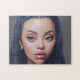 Portrait Blue Hair Eyes Smile Young Woman Jigsaw Puzzle