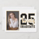 This image features a stylish graduation invitation design. On the left side, there is a customisable portrait area where any graduate's photo can be added, adding a personal touch to the invitation. On the right side, the text "25 twenty GRADUATE" is prominently displayed in bold black and gold lettering, indicating the graduation year of 2025. This invitation is both elegant and celebratory, perfect for marking a significant milestone.