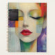 This stunning abstract portrait of a woman blends surrealism with vibrant colour block techniques. Her serene expression, closed eyes, and bold red lips are framed by a mix of geometric shapes and painterly textures. A modern, avant-garde design to add a touch of modern elegance.