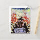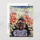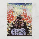 A fine art abstract postcard with the painting by Paul Klee (1879-1940) titled, Portrait in the Garden (1930). Done in gouache and paper set on a board. A German Expressionist artist born in Switzerland, he belonged to the group of artists called, Der Blaue Reiter (The Blue Rider). A surreal portrait of a person on a black background.