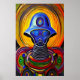 A portrait of a colourful robot alien in the style of Edvard Munch. This is a AI generated art.