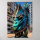 A bluish reptilian alien in the city Large building in the background. This is a AI generated art.