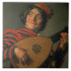 Portrait of a Jester with a Lute (oil on canvas) Tile