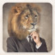 This design features a portrait of a lion in a suit and tie.