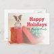 Portrait of a white and brown Boston Terrier Holiday Postcard